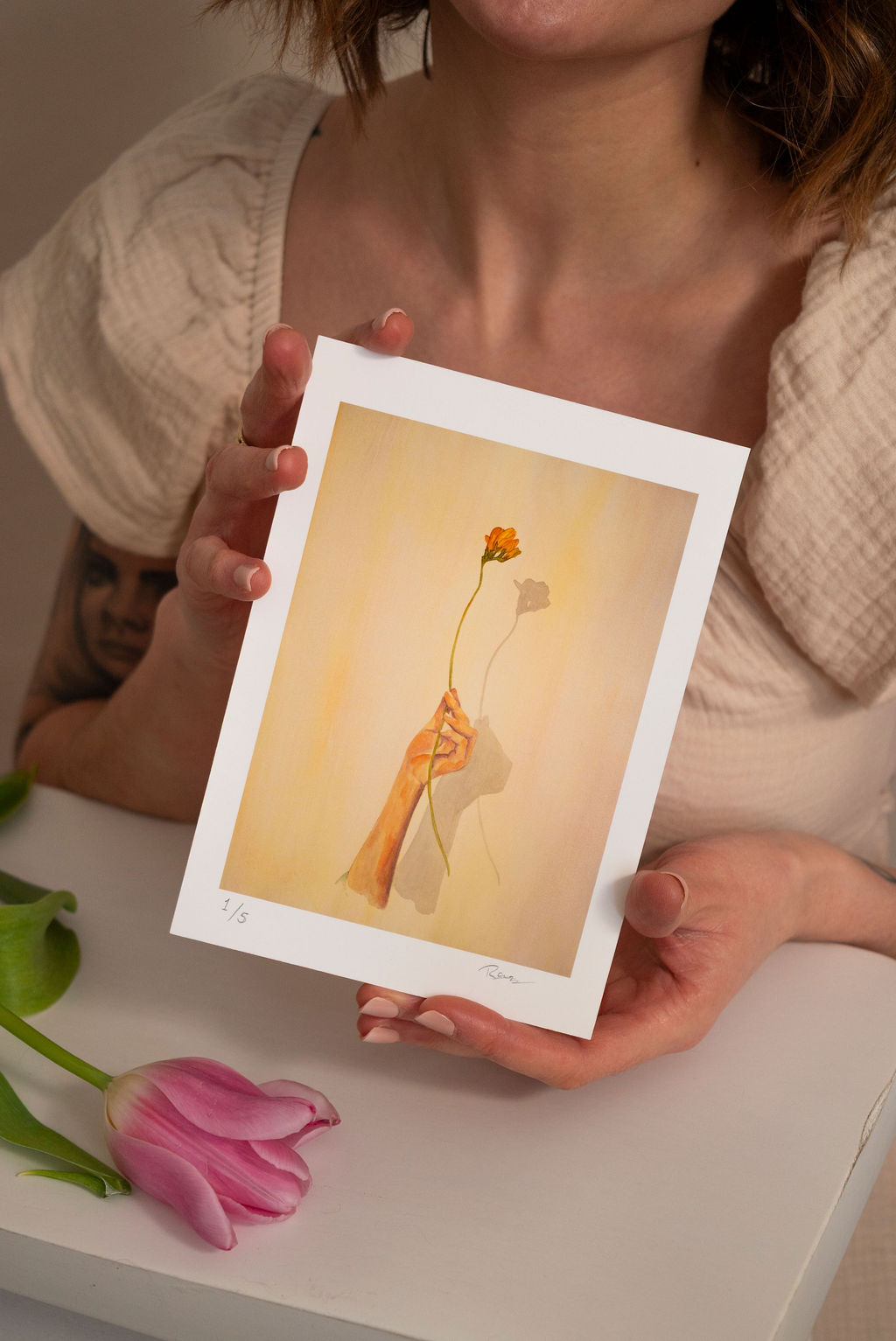 The flower, fragile and radiant, becomes a symbol of those precious moments we choose to share — a suspended instant where tenderness, presence, and generosity take on their full meaning.